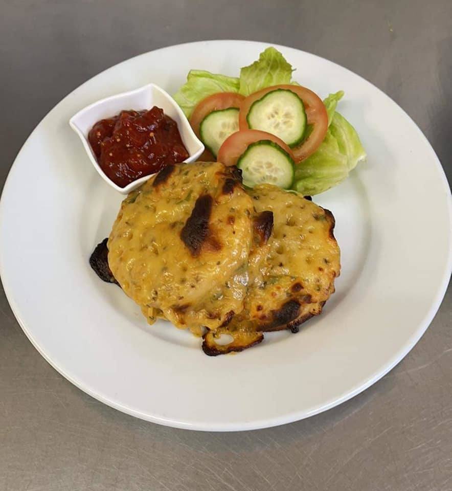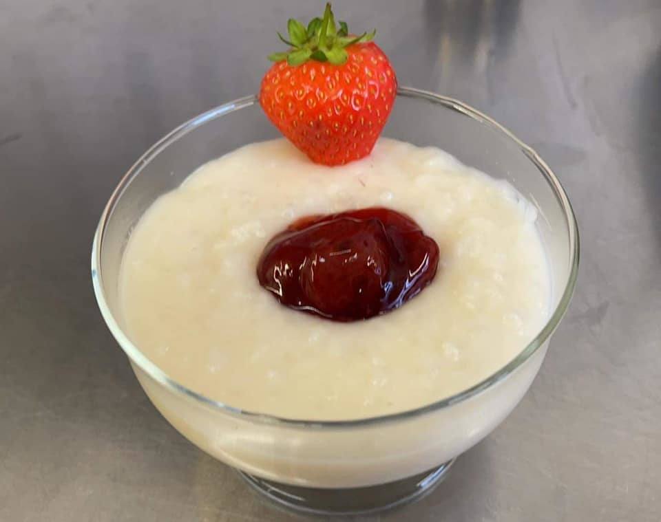 Welsh Rarebit with Tomato Chutney and Salad and for dessert Milky Rice Pudding with Strawberry Jam and Fresh Strawberry on the side.