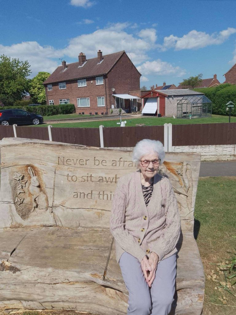 Yesterday Elaine and Val went for a walk round the village and stopped to have a chat on the bench