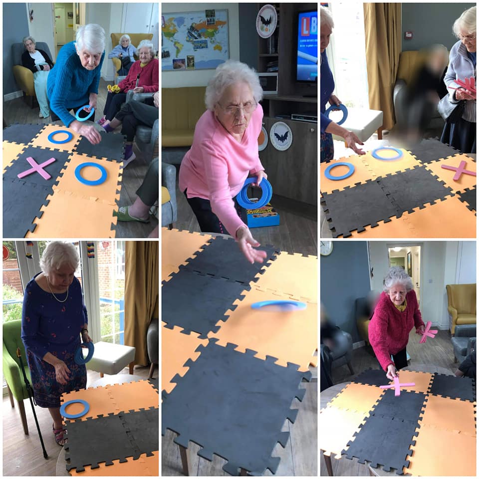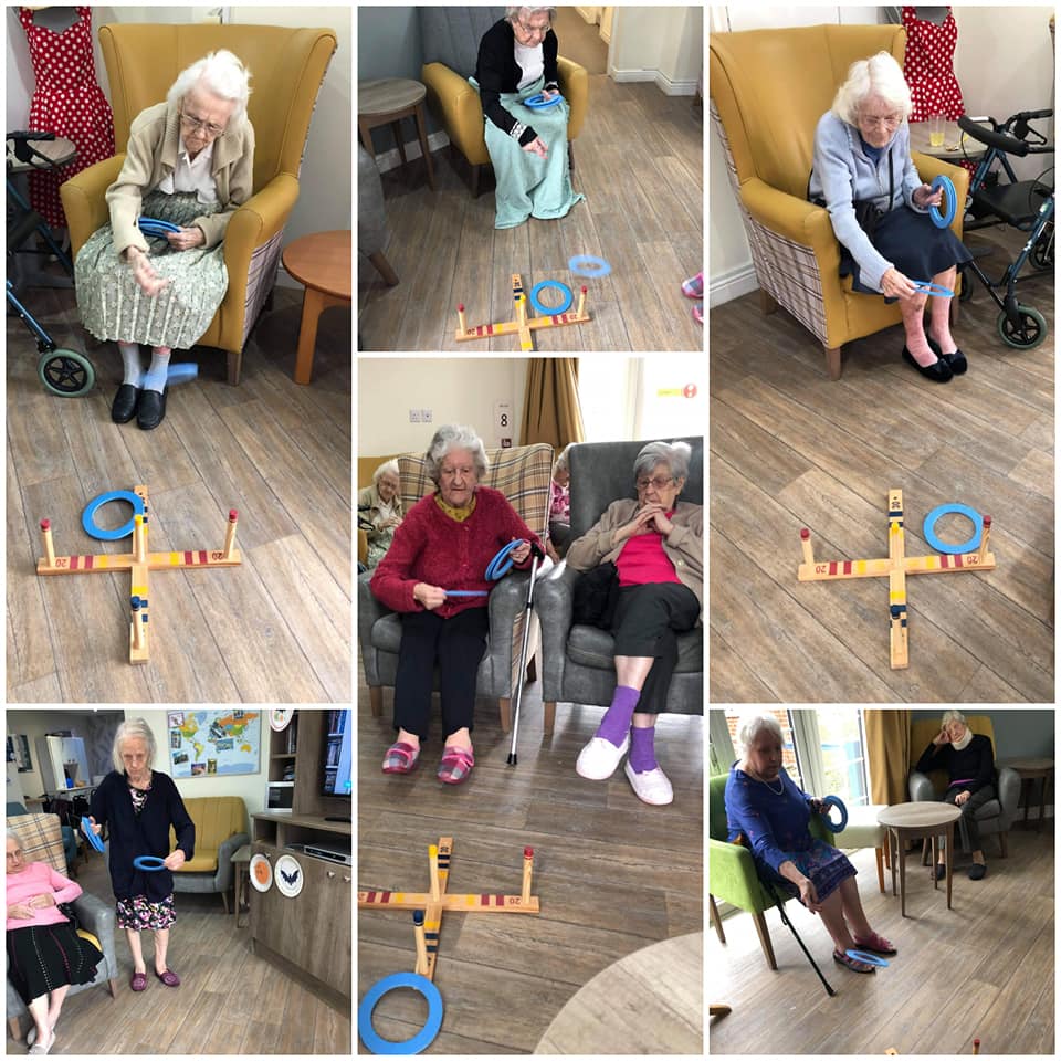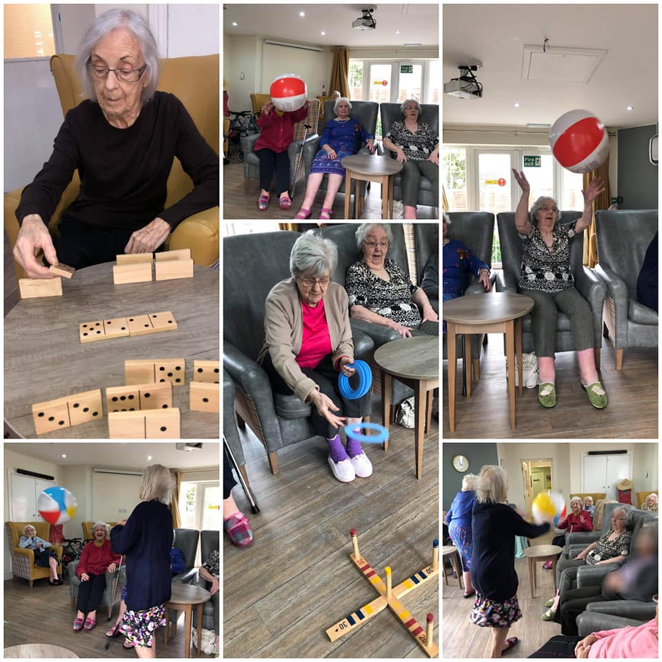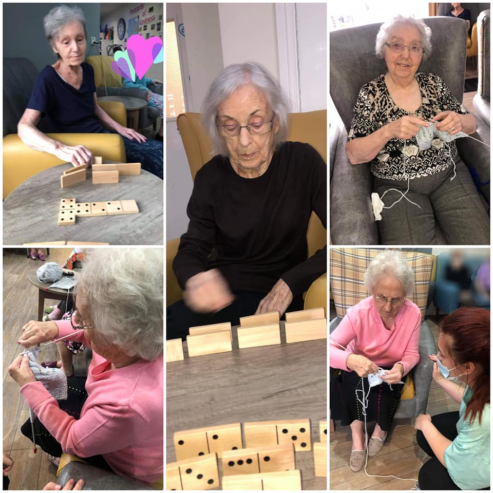 All in a day’s work … games, knitting, exercise, and simply having a chat.