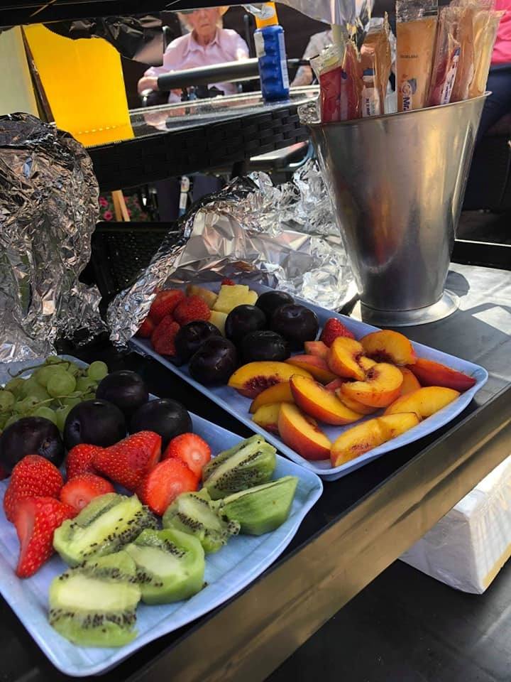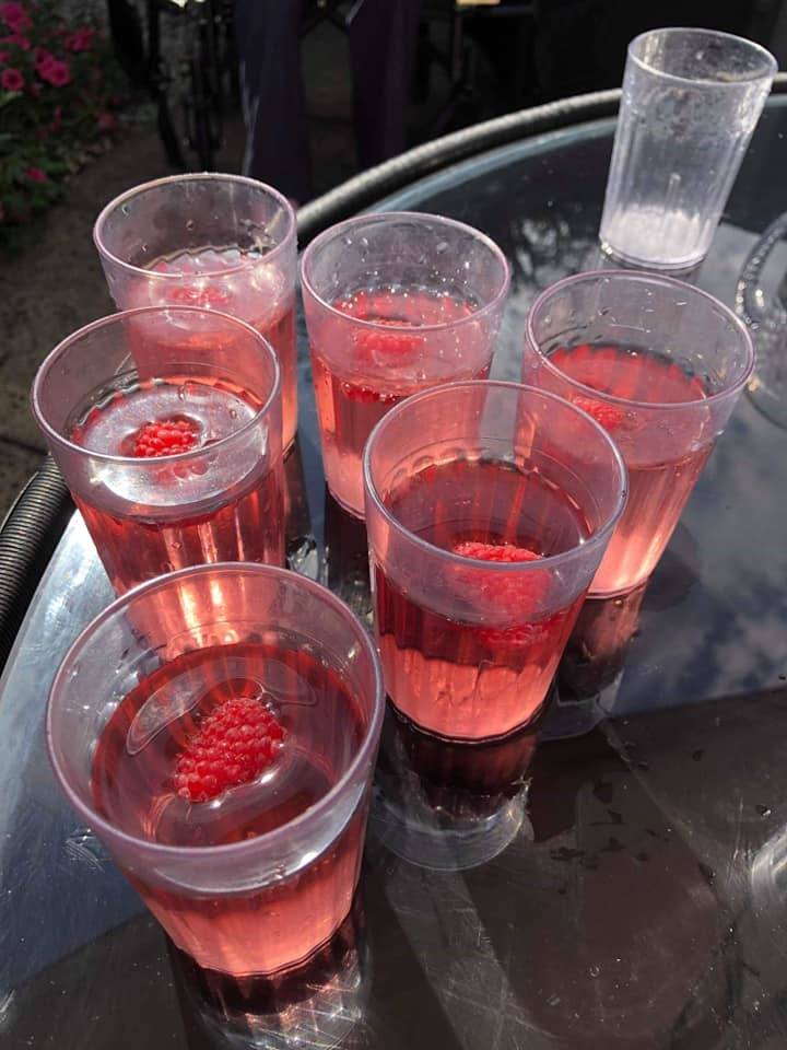 Enjoying a lovely afternoon in the garden with friends and family, drinks, fresh fruit, ice pops, cakes, umbrellas, hats and lots of sun cream … and some music playing !