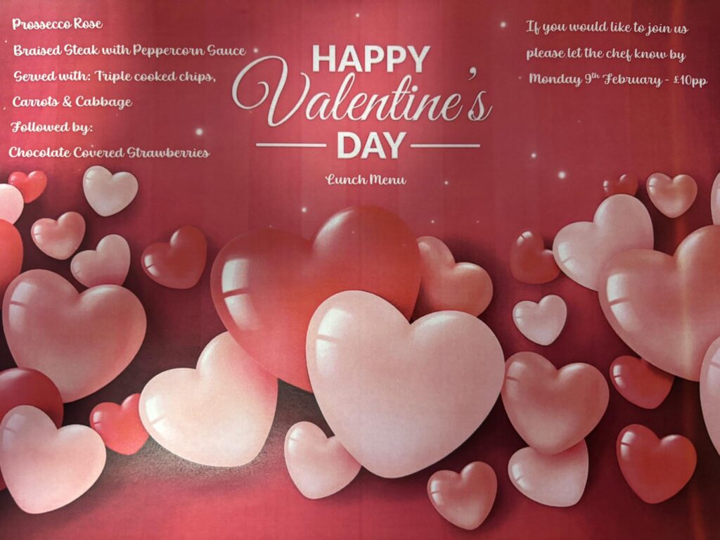 Our Valentines Day menu – if you would like to join us please let the chef know by Monday 9th February £10pp